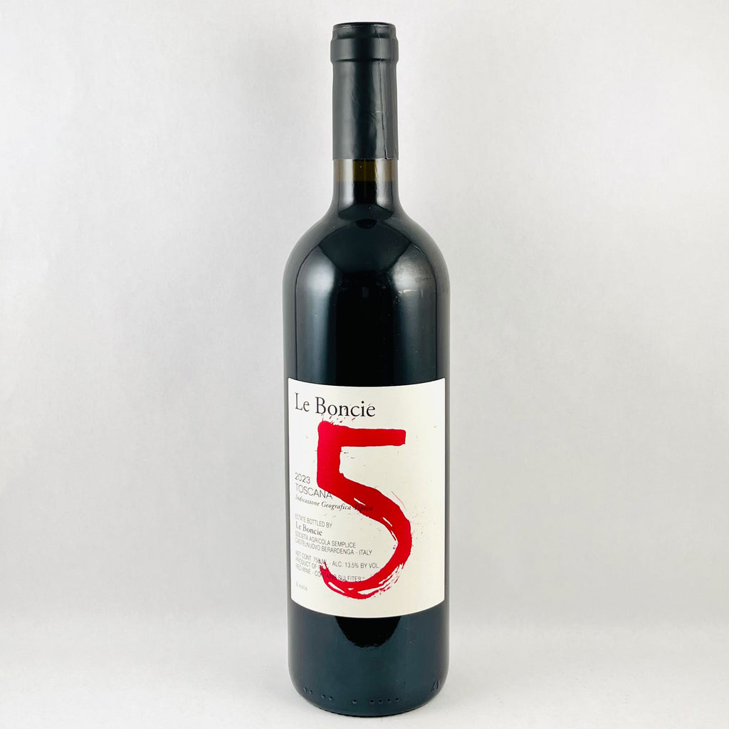 The wine's name "Cinque" recognizes the original composition of the wine, namely five grape types classic to the production of the finest Chianti Classico: principally Sangiovese with Colorino, Mammolo, Fogliatonda and Ciliegiolo completing the quintet. Recently, the wine is no longer composed strictly of the 5 grapes anymore, but Giovanna says the name also refers to the relative precociousness of the wine, thus a wine to "keep at hand" [5 fingers]. She also notes that grape vines have five leaves and flowers per bunch, that their house address is number 5, and that in Italian school you are graded one to ten, with five not quite passing [like a "C" or perhaps even a"D"!], so the wine is graded a 5 because it doesn't make the cut for the noble cuvee "Le Trame". All parts of a good story to justify this quirky name of "5" or "Cinque".